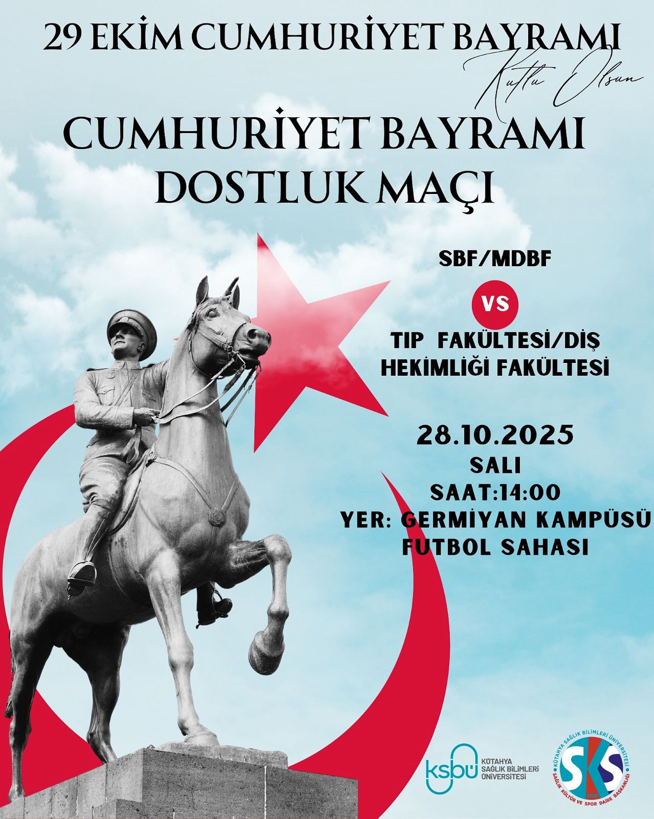 28.10.2025 Salı günü saat 14:00'te Üniversitemiz Germiyan Kampüsü Futbol Sahası'nda öğrencilerimiz arasında dostluk maçı yapılacaktır.